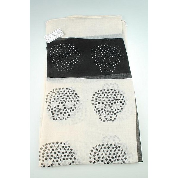 Sjal/scarf med små stjärnor som bildar mönster av döskallar.