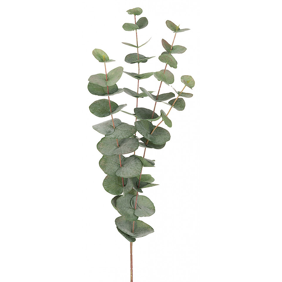 Eucalyptus 60 cm. Vacker och naturtrogen konstgjord grön eucalyptuskvist. En dekorativ konstblomma som är fin för sig eller köp flera och skapa en bukett. Stjälk med ståltråd inuti så den kan böjas formas som man vill. Går att klippas kortare om man vill.
