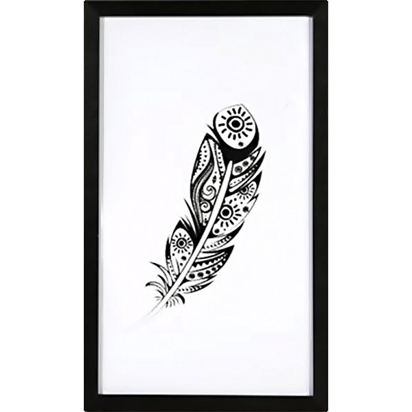 Snygg tavla med svart träram och fint motiv av en fjäder.