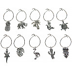 Söta glasmarkörer "Djurmix". Set om 10 st vinglas- eller koppmarkörer med olika silverfärgade djur m.m. Söta dekorationer med elefant, apa, sköldpadda, krokodil, flamingo, uggla, ananas, palm, monsterablad och en kaktus. Med en glasmarkör håller varje gäst reda på sitt glas. Fästs runt foten av glaset eller i handtaget på en kopp. Fina vinglasdekorationer till sommarfesten!